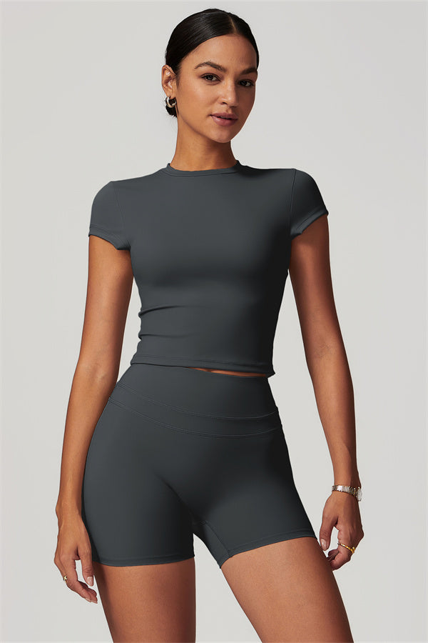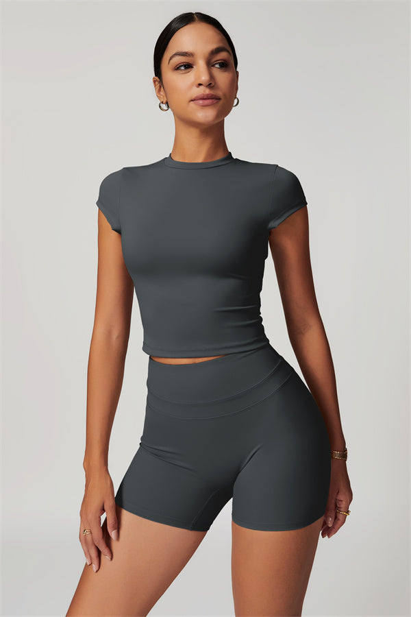 Elevate your workout wardrobe with our SculptFit T-shirt and Shorts Set, designed for both comfort and style.