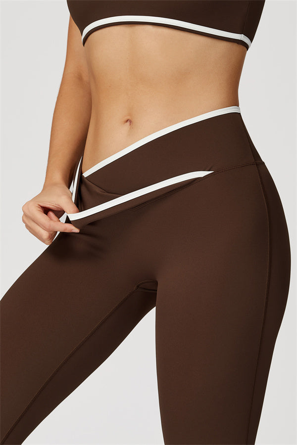 Cross-over waistband prevents rolling and slipping
