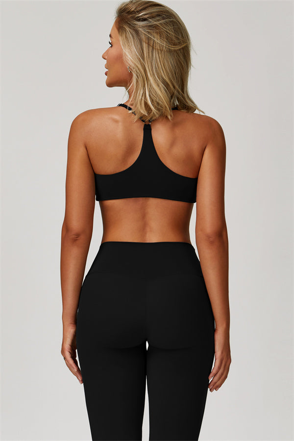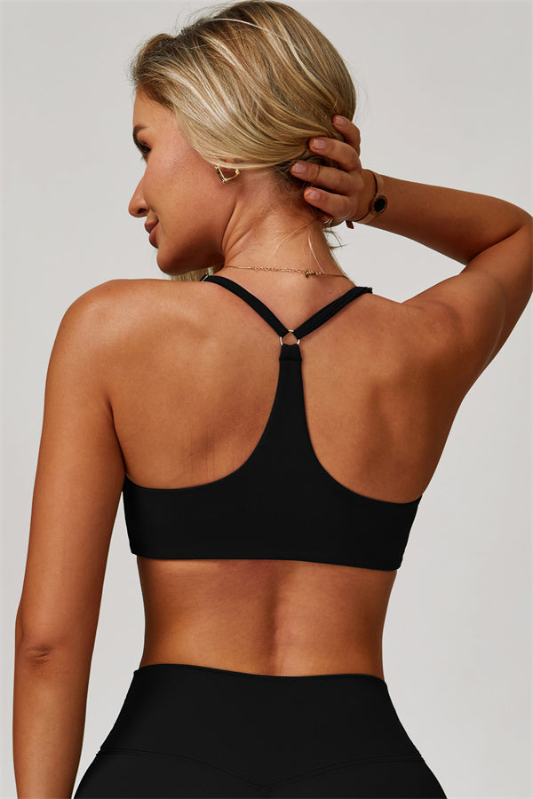 • Y-shaped back design frames the upper back beautifully
