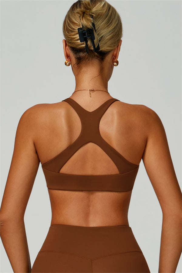 • X-shaped open back frees shoulder blades and showcases a beautiful back line