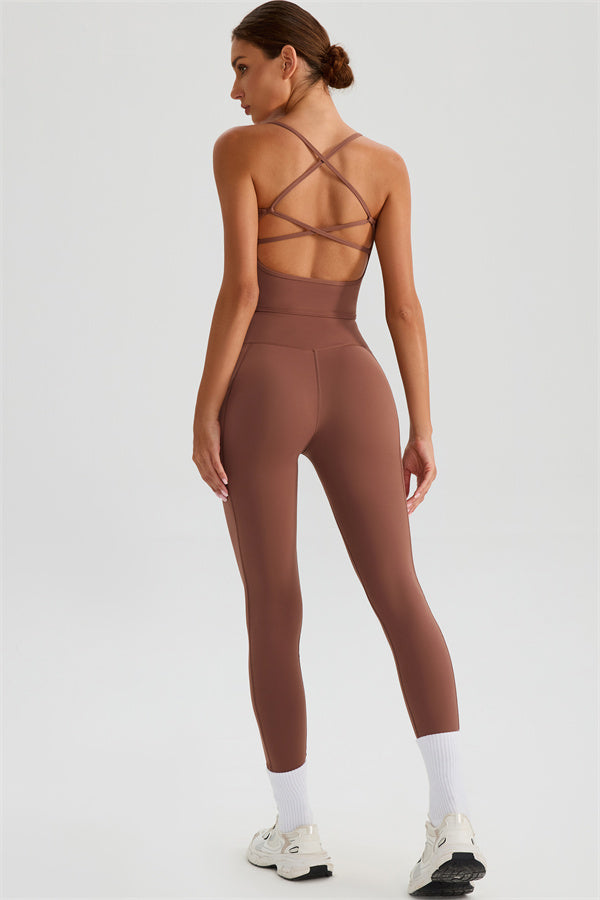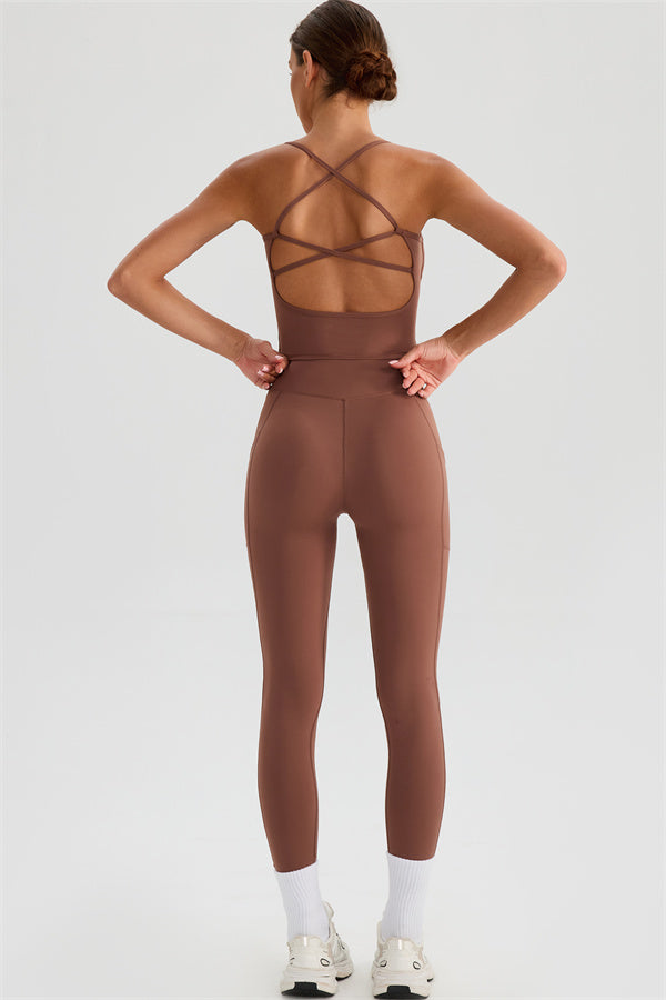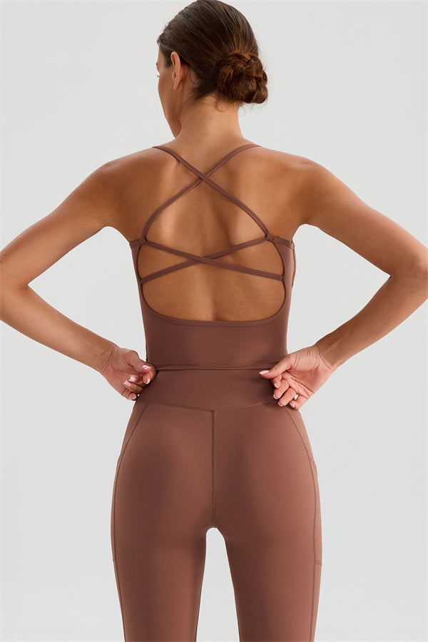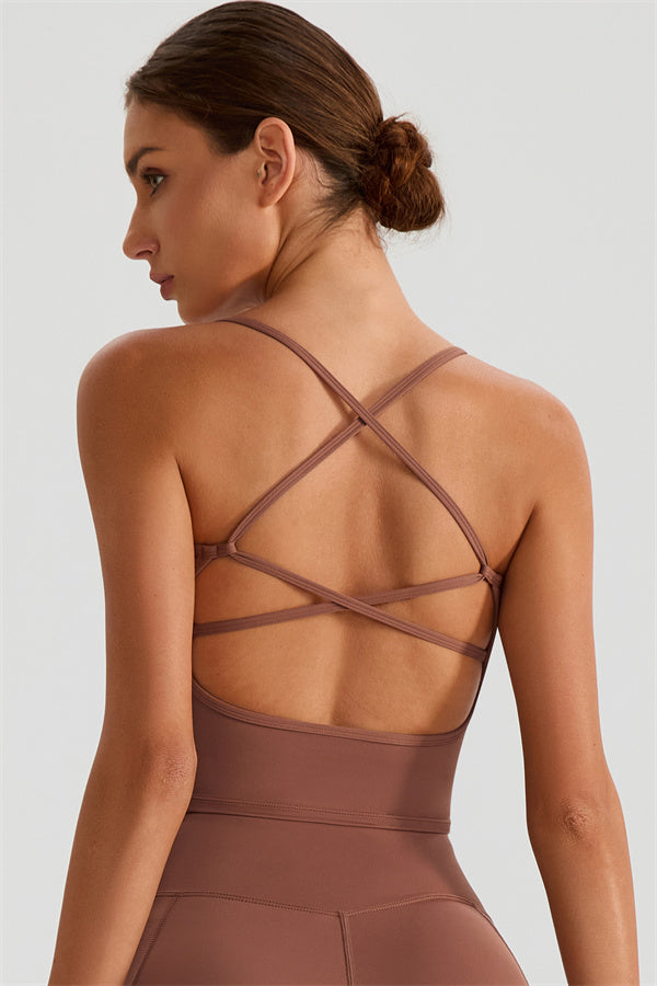 Double cross-back cutouts add a chic touch while accentuating back lines
