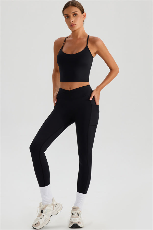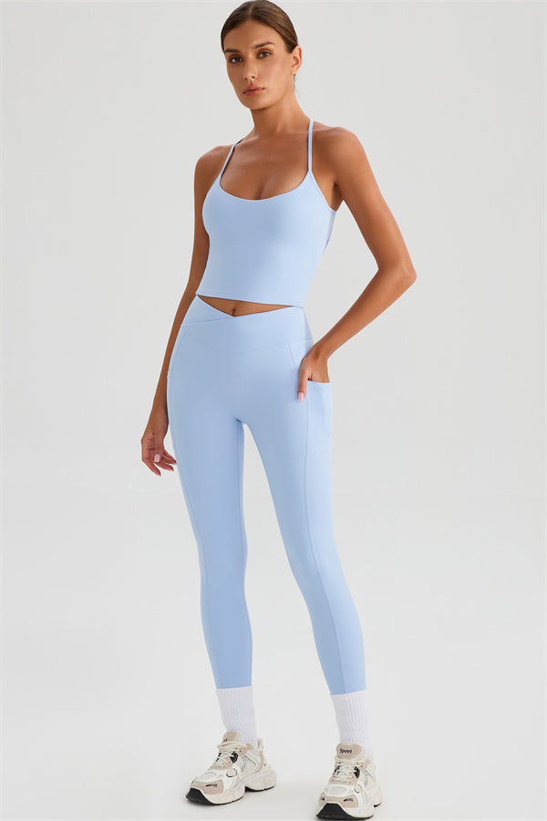 High-waisted crossover leggings flatten the tummy and sculpt a defined waist