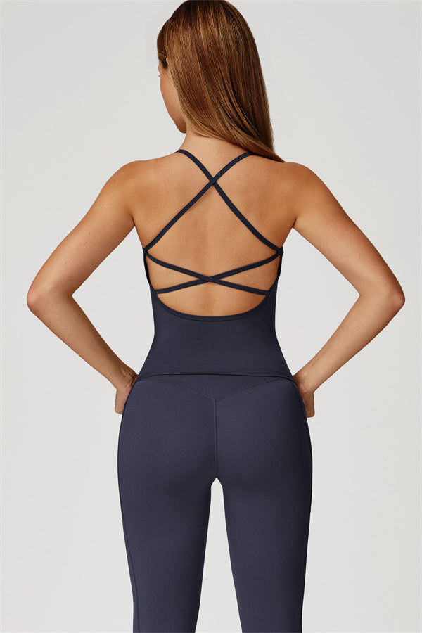Thin cross-back straps with cut-out design for a graceful back silhouette