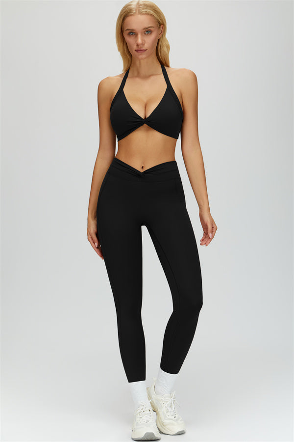 The Dreamy Halter Sports Bra combines style and support with a chic, breathable design.