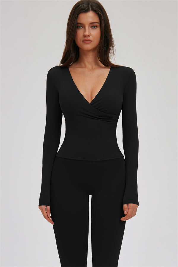 Cross V-Neck Design: Highlights your collarbones and visually elongates the neck