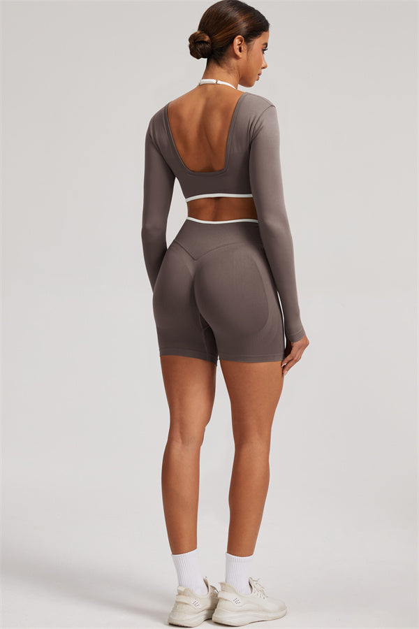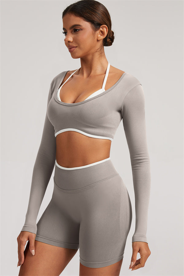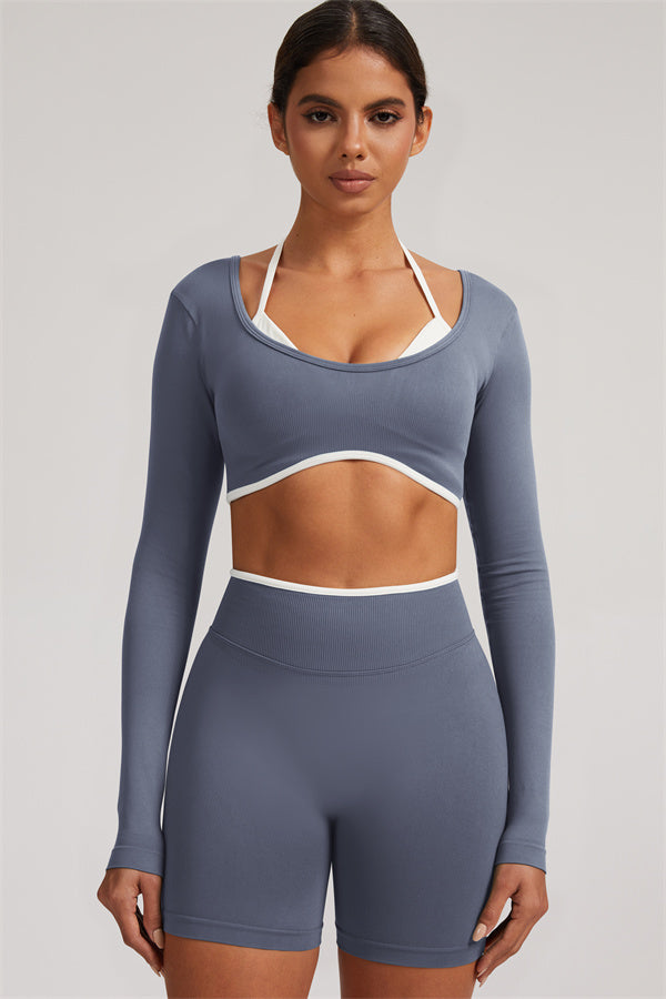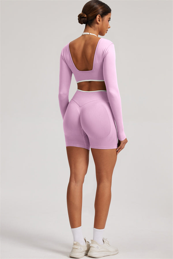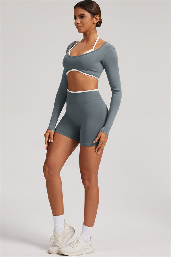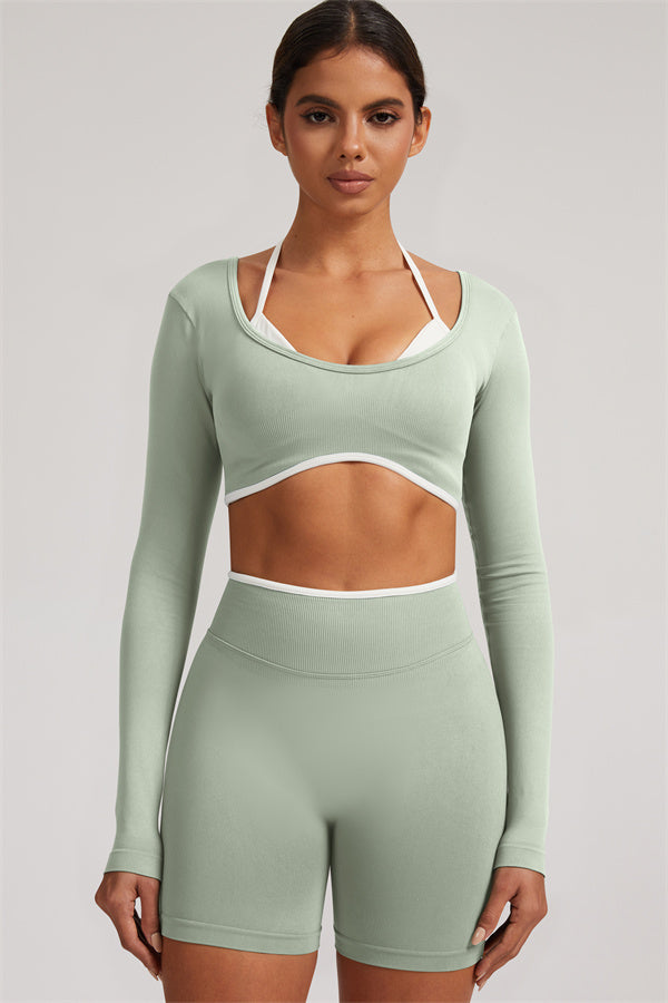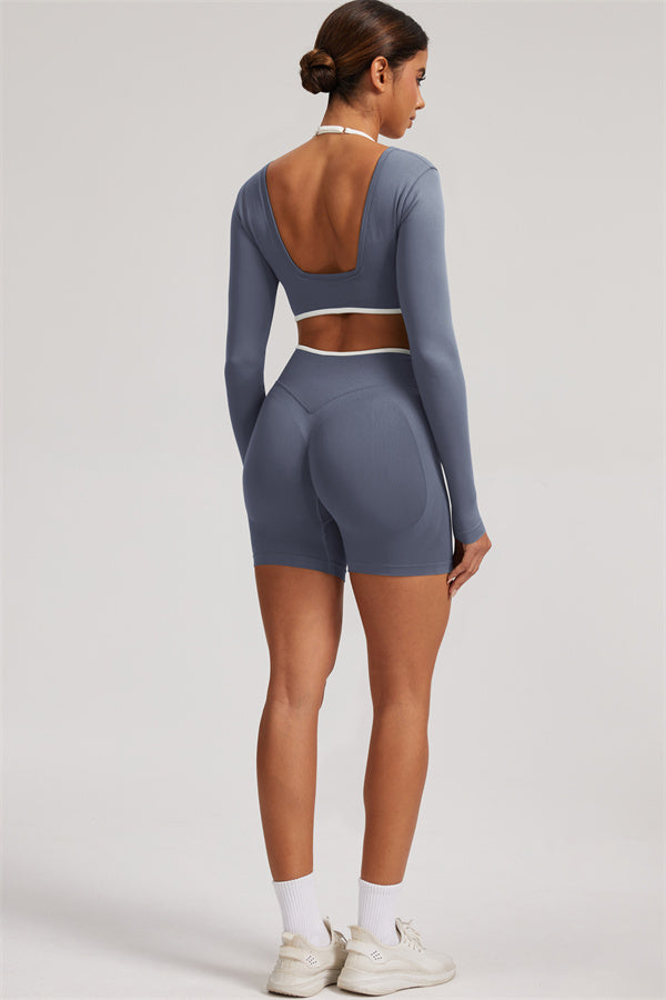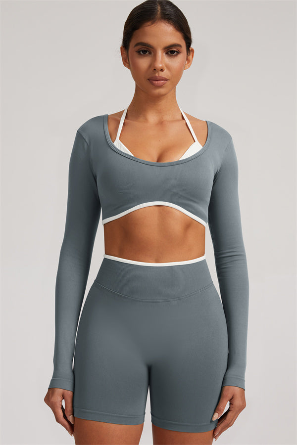 The Elevate Long Sleeve Crop top Shorts 2-Piece Set