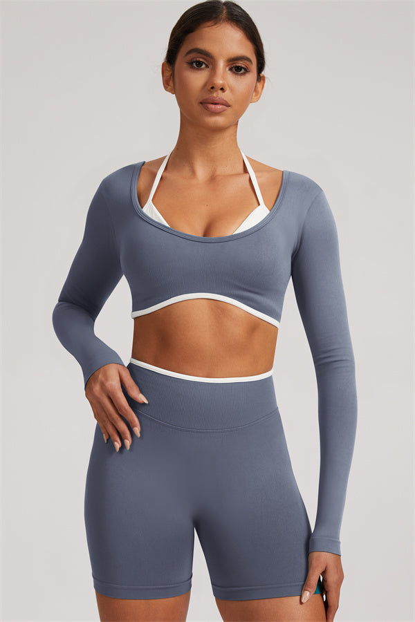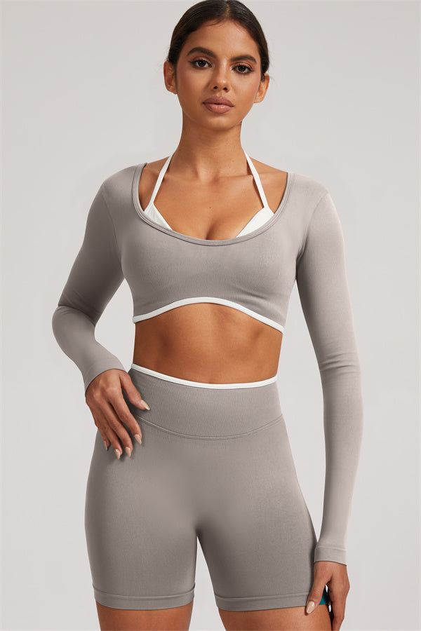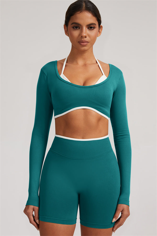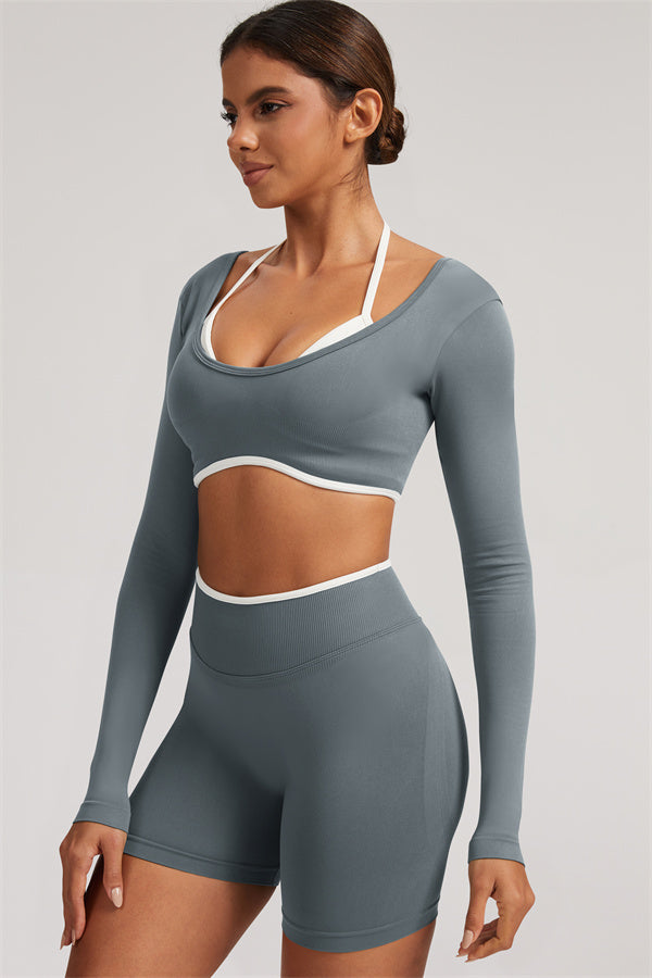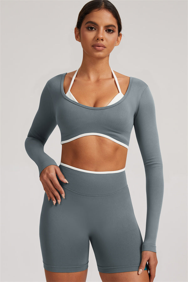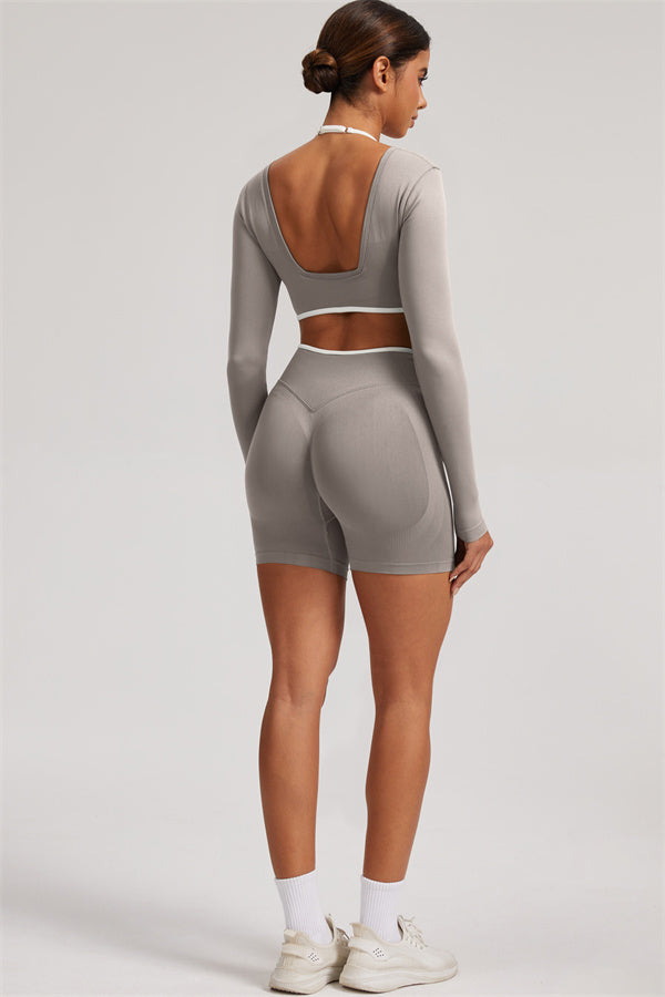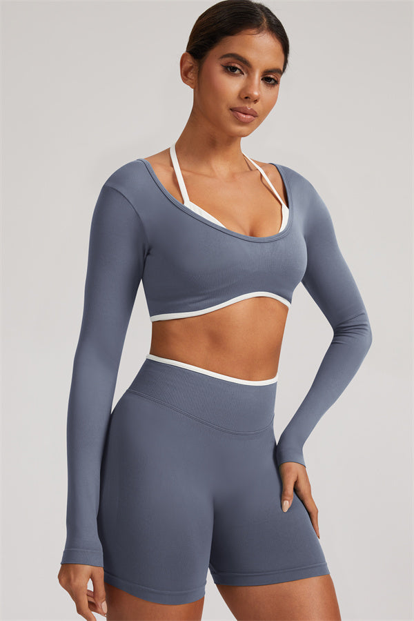 The Elevate Long Sleeve Crop top Shorts 2-Piece Set