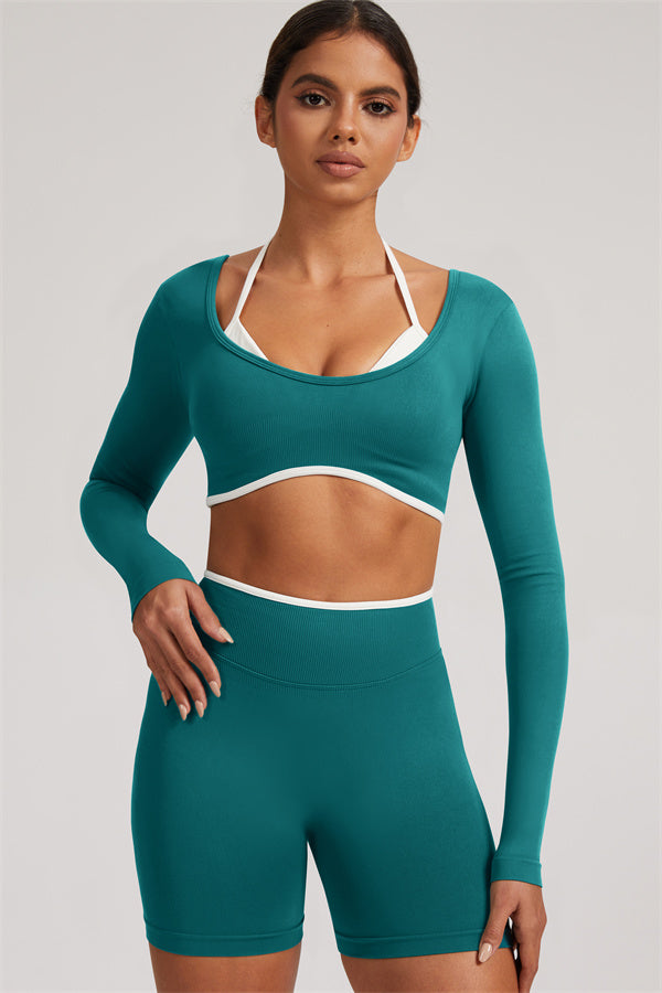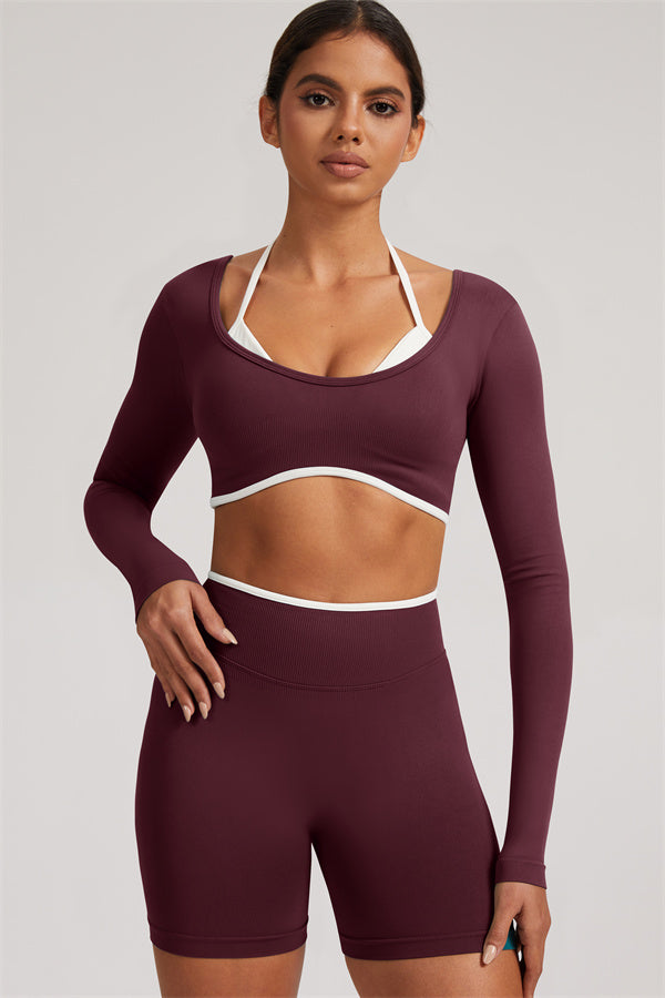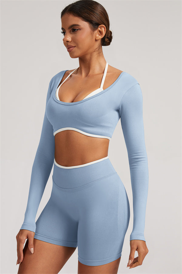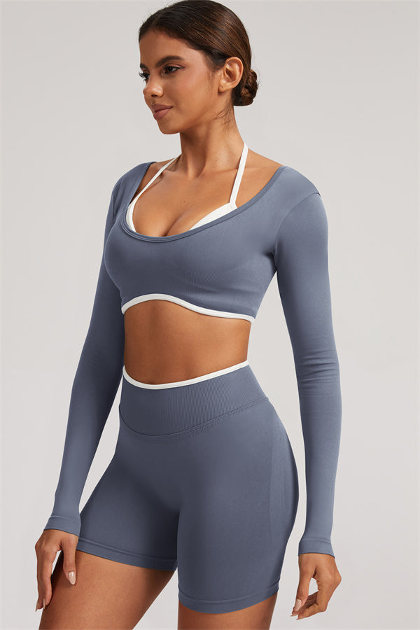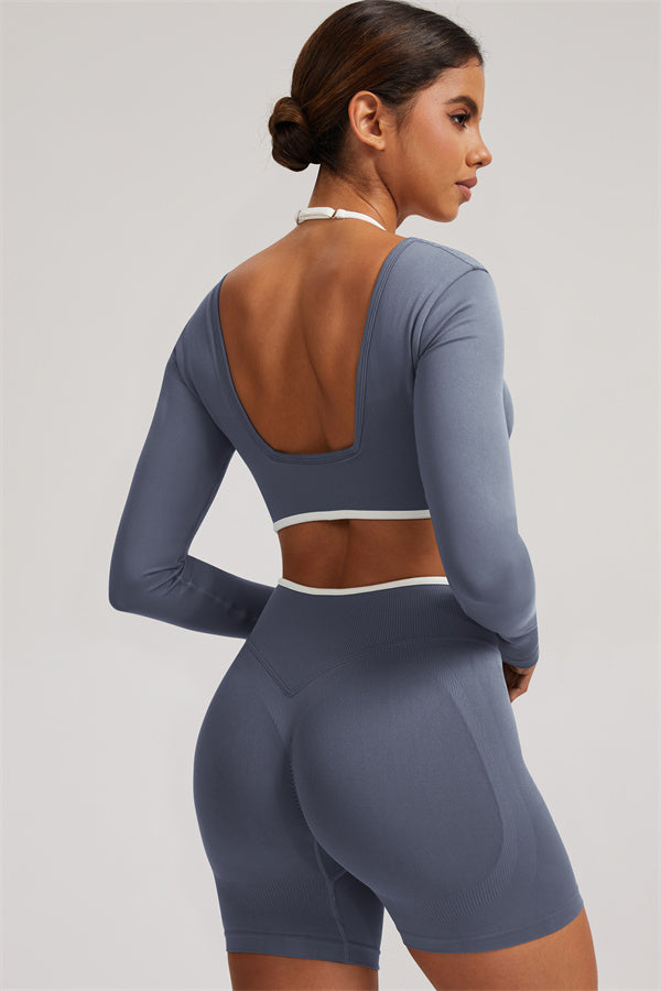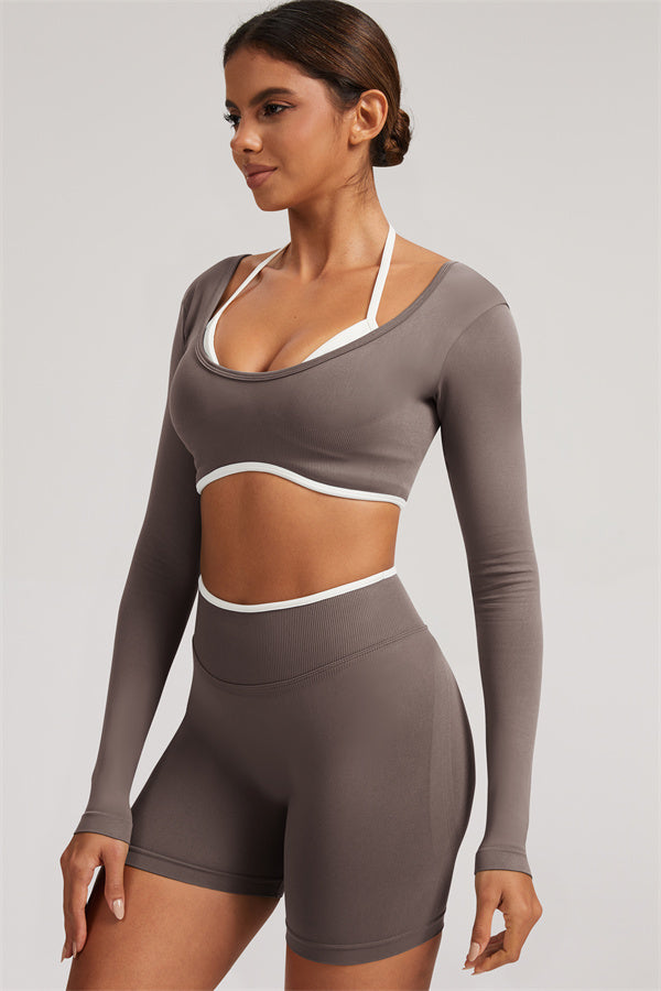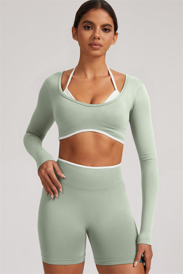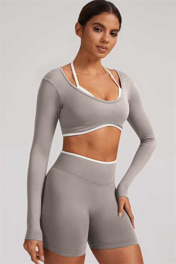 The Elevate Long Sleeve Crop top Shorts 2-Piece Set