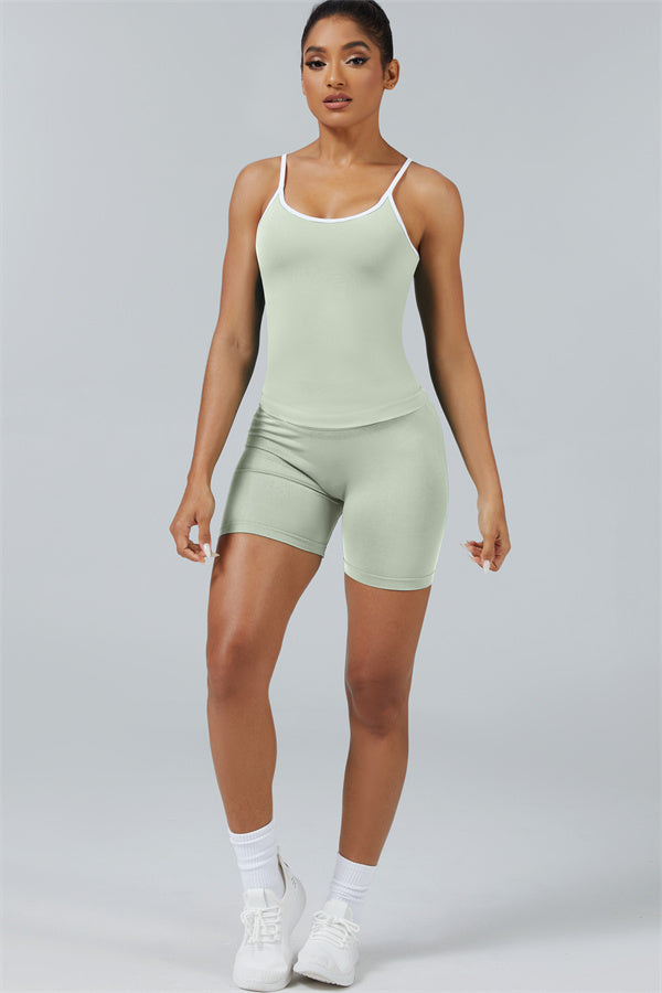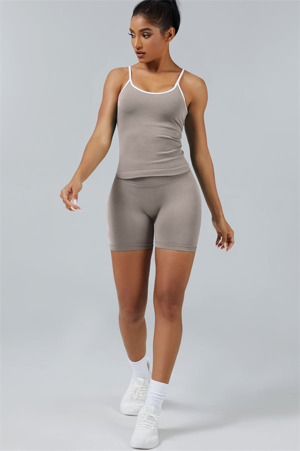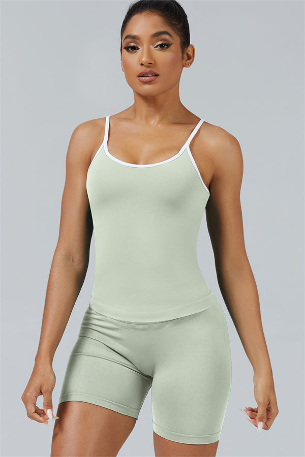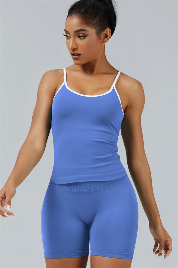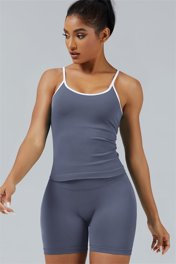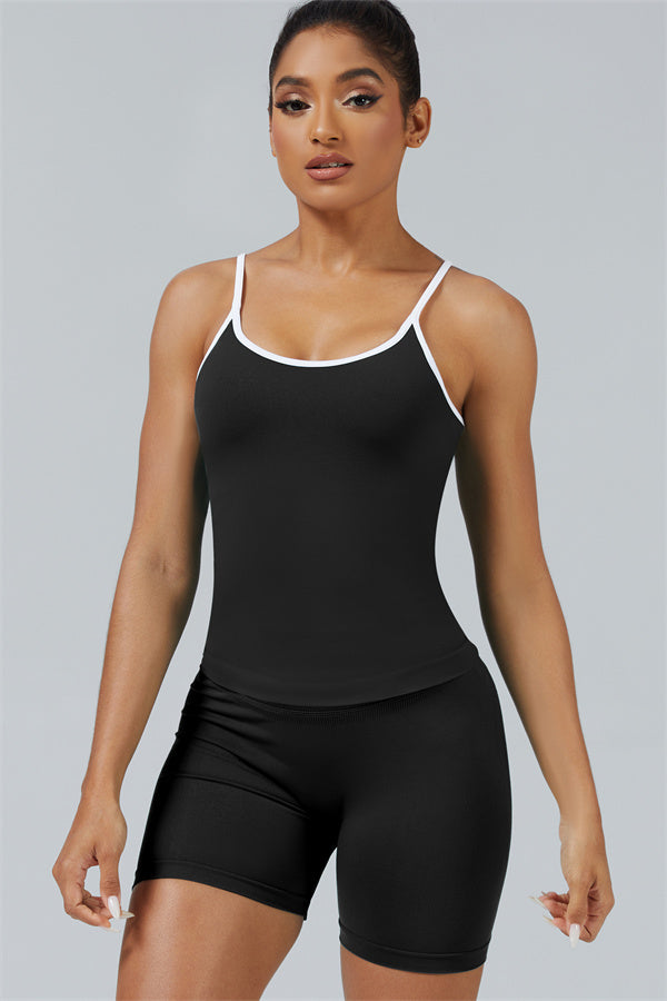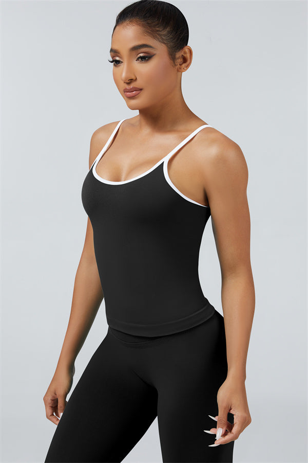 Elevate your workout style with a crop top designed for breathability and flattering support. Its contrast trim and structured lines add a layered, dynamic look, while the U-shaped back keeps you cool and unrestricted.