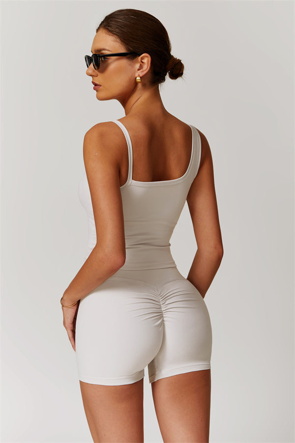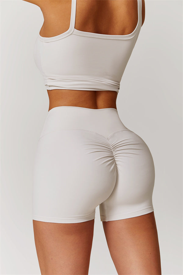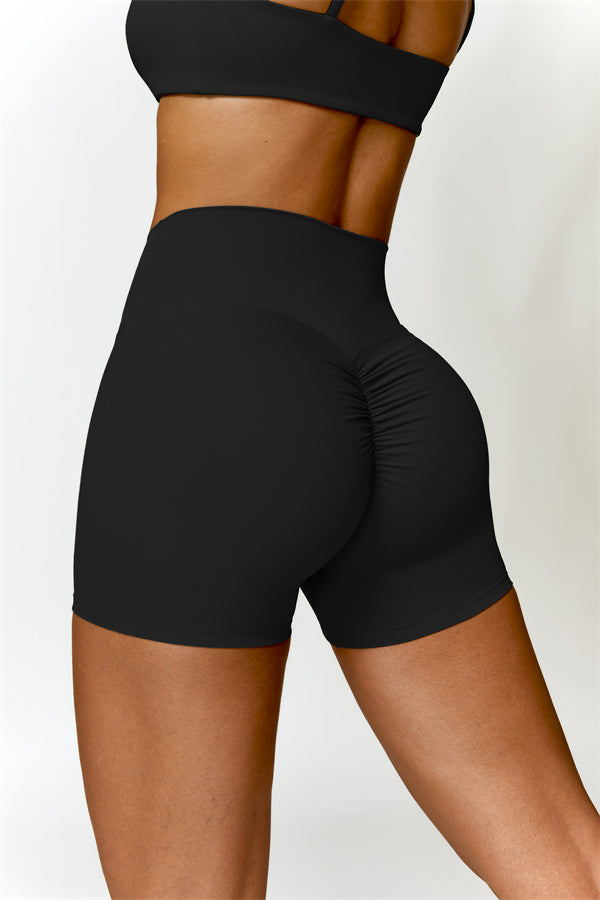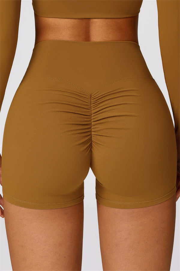 Our Sculpting High-Waist Shorts are designed to enhance your natural curves and elongate your silhouette. Featuring a sleek, form-fitting design, these shorts visually stretch and slim the legs while providing a flattering fit. The back pleated detailing gently lifts and shapes the hips for a naturally enhanced peachy shape.