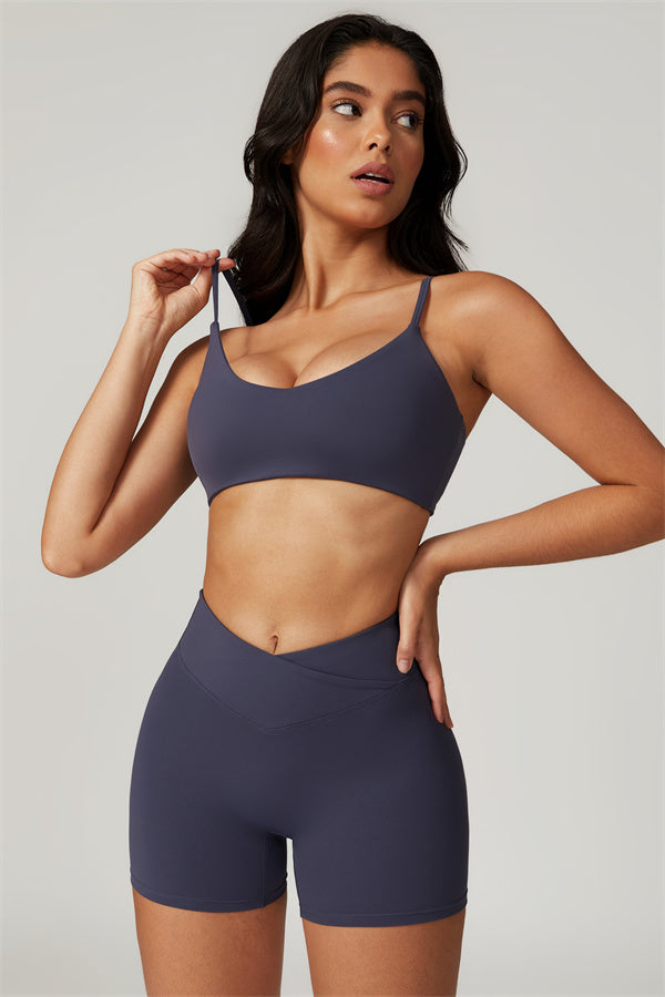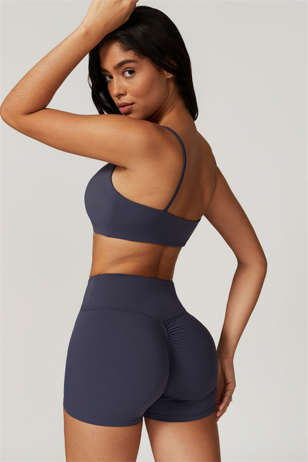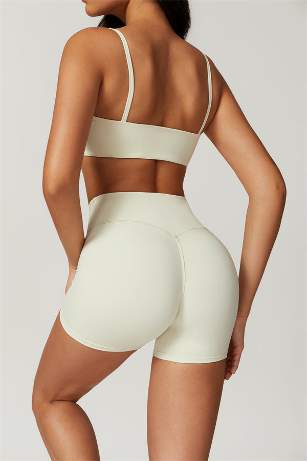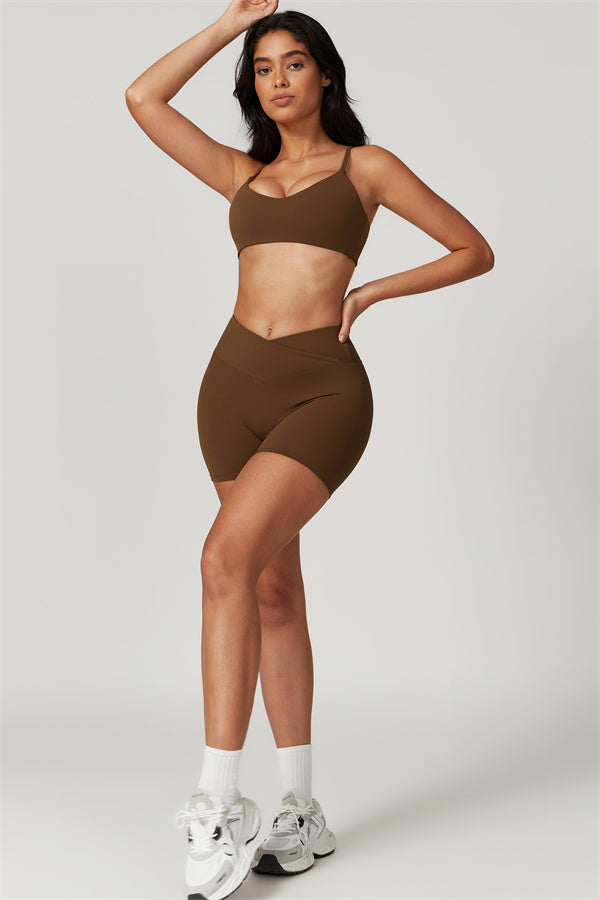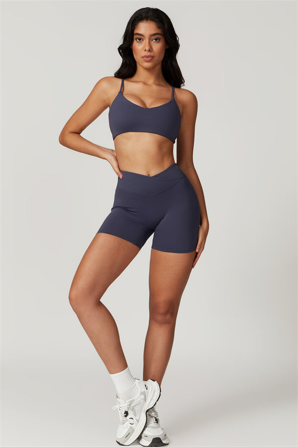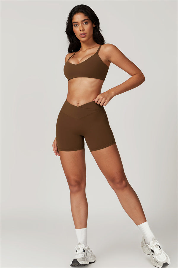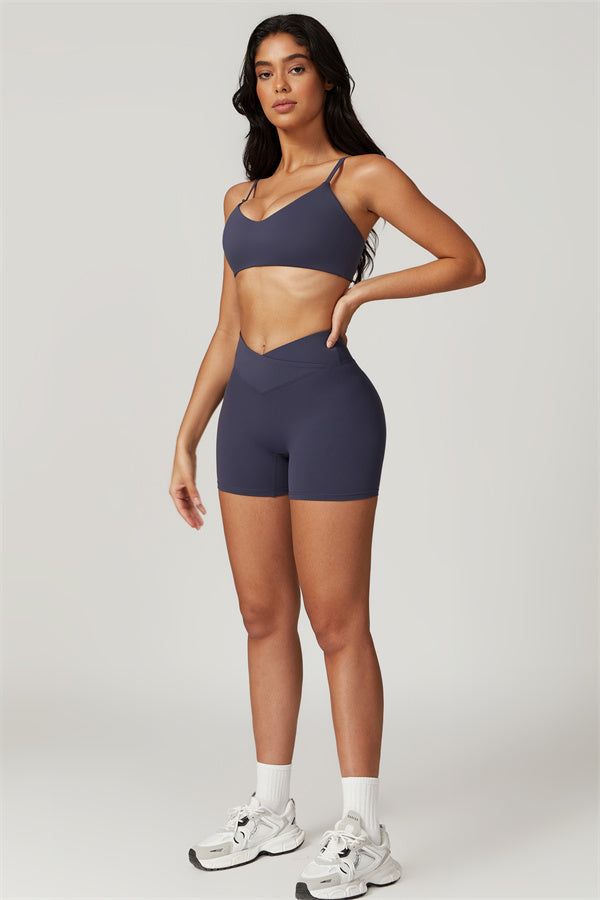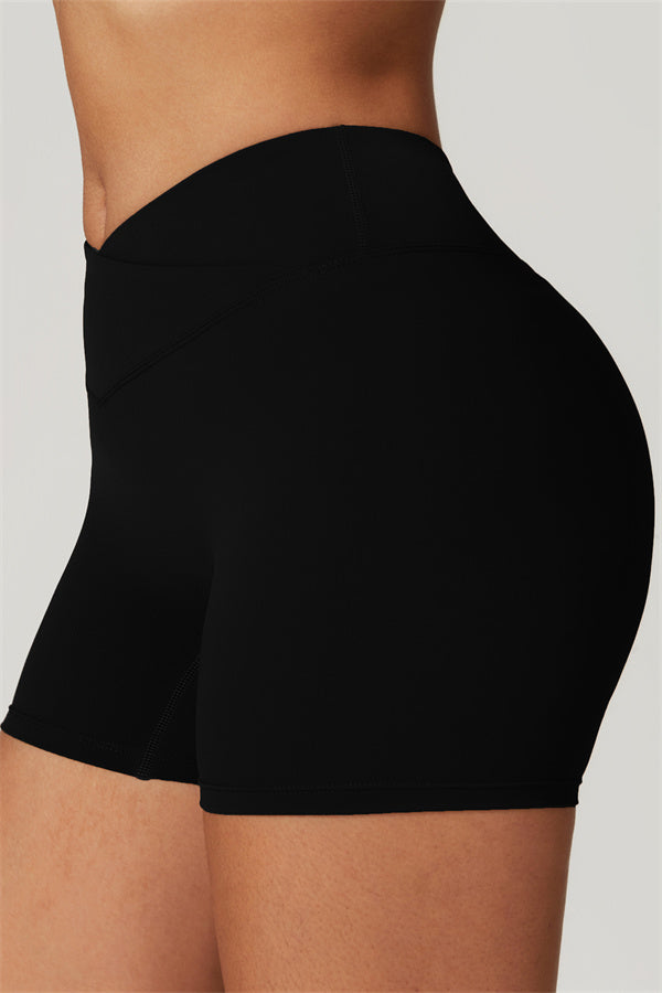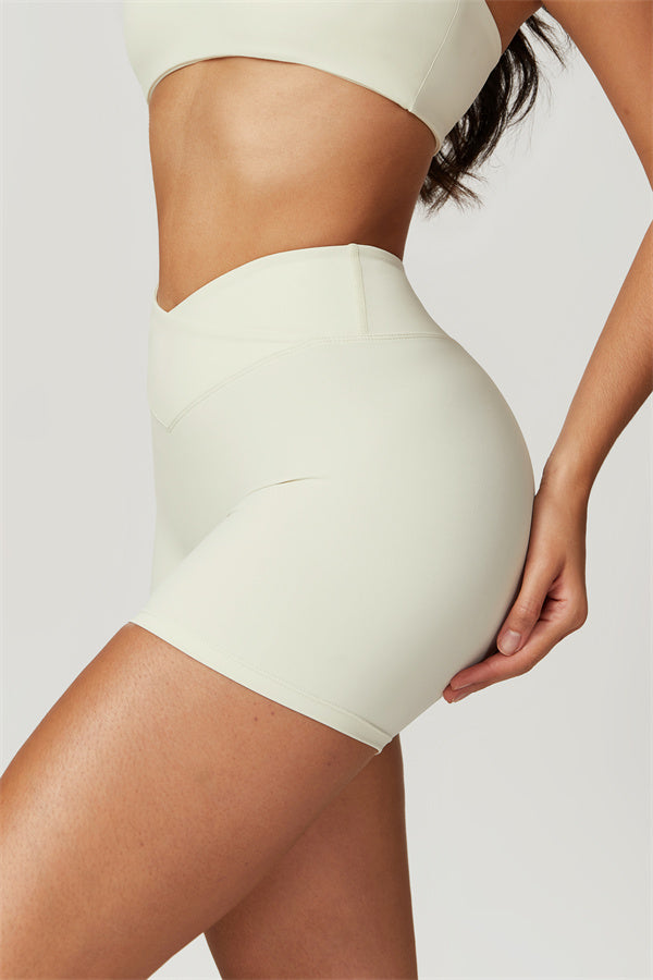 Elevate your workout wardrobe with these high-waisted shorts designed for both style and performance. The V-shaped cross-fold waistband provides a secure fit, ensuring the shorts stay in place no matter how intense your activity. The sculpting design enhances your natural curves, giving your glutes a lifted and rounded appearance.