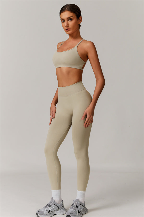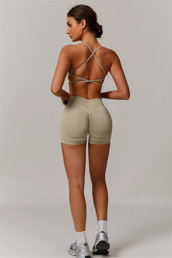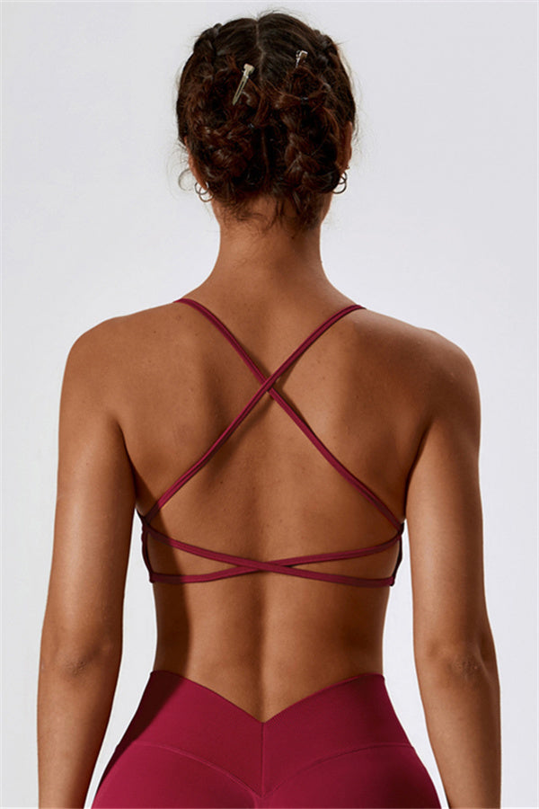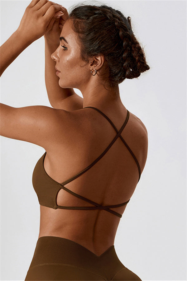 Introducing our U-neck sports bra, thoughtfully designed to enhance your shoulder and neck lines. The delicate cross-back straps elegantly highlight your shoulder blades, adding a touch of sophistication to your activewear collection.