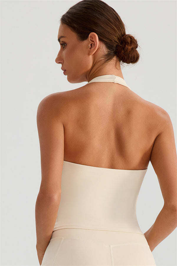 • Halter design highlights your back curves while freeing the shoulders for unrestricted movement