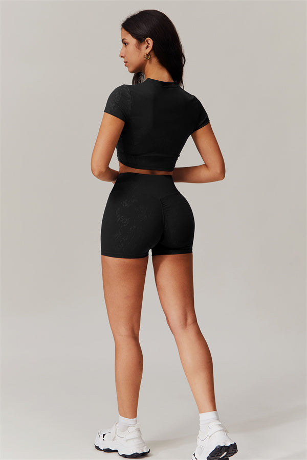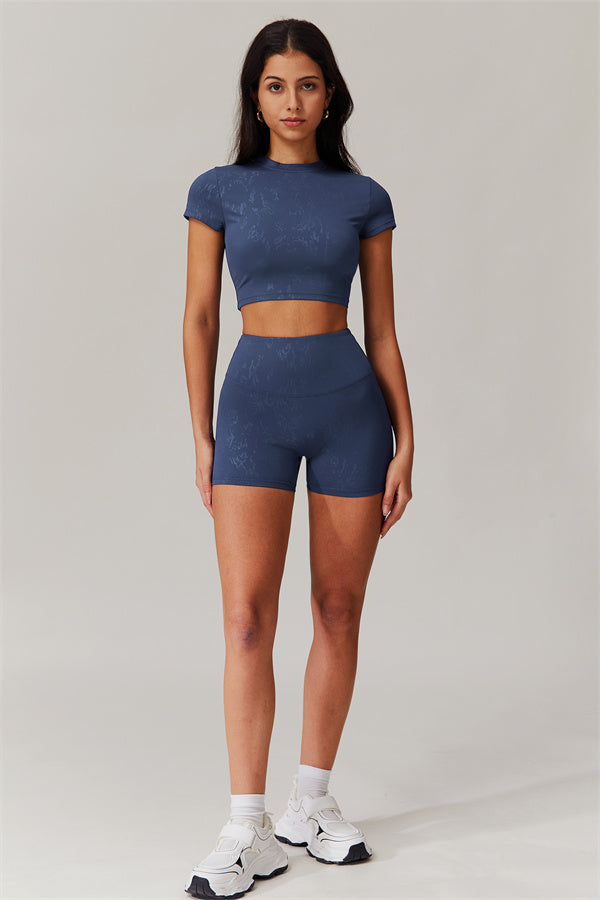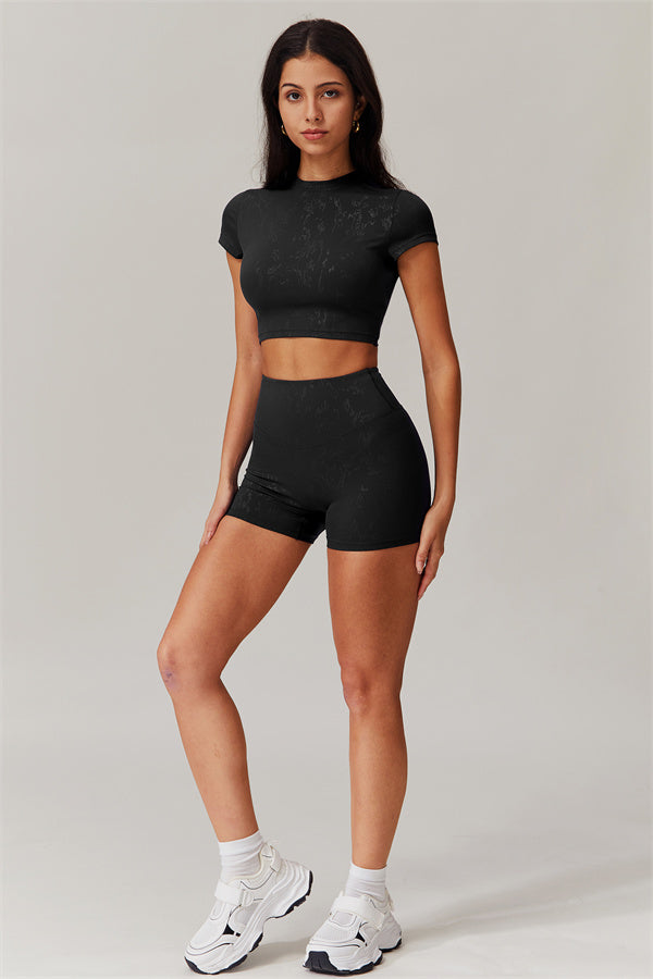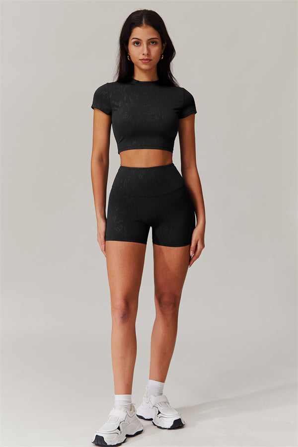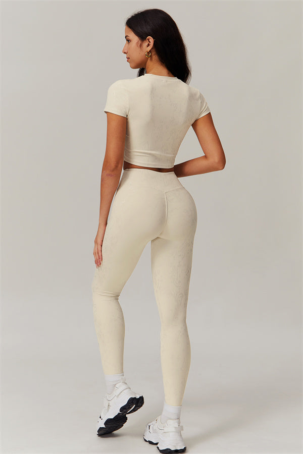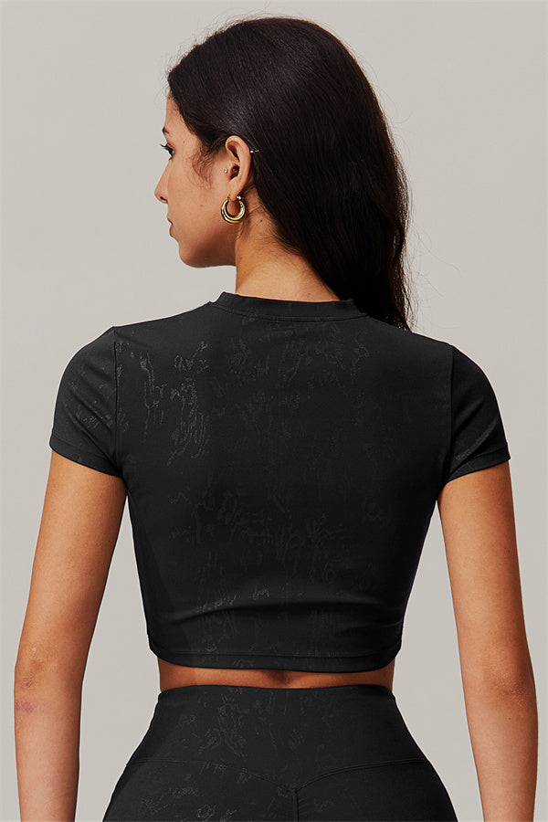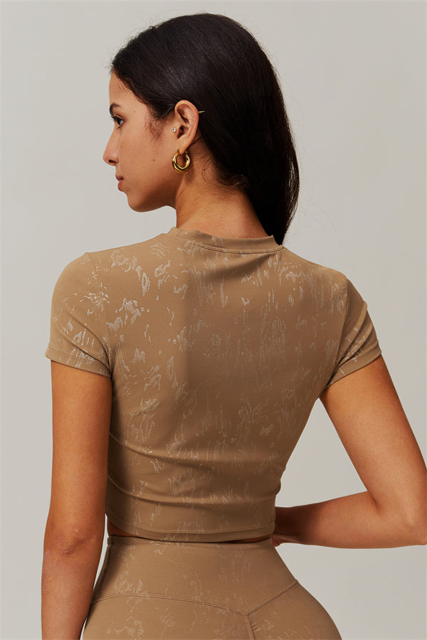 This Gold-Accent Slim Fit T-Shirt combines style with performance, featuring a sophisticated metallic print created using advanced rolling printing techniques. The shimmering gold accents elevate the look, making this tee a versatile piece that transitions seamlessly from the gym to casual outings. Its slim-fit design hugs the body, providing a contoured silhouette that enhances your natural curves while still allowing freedom of movement.