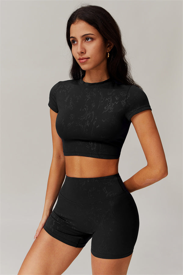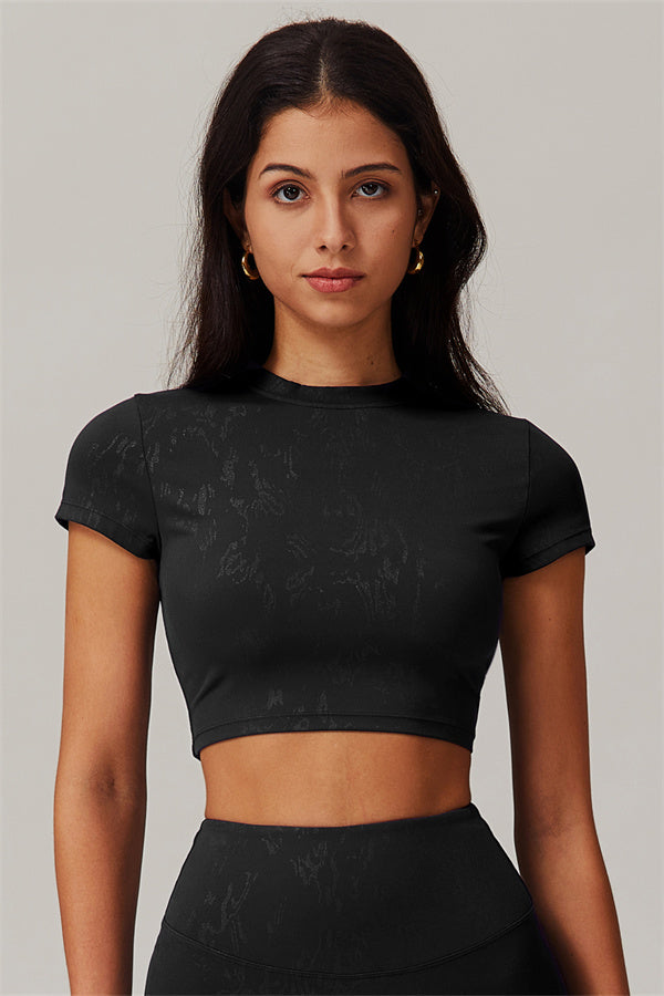 With a classic round neckline, this T-shirt flatters the neck and adds an elegant touch to any workout or athleisure ensemble. Made from a soft, stretchy fabric blend of 78% recycled nylon and 22% spandex, it offers a comfortable fit that's perfect for high-energy activities or relaxed moments. Breathable and durable, this tee is designed to keep you comfortable and stylish wherever you go.