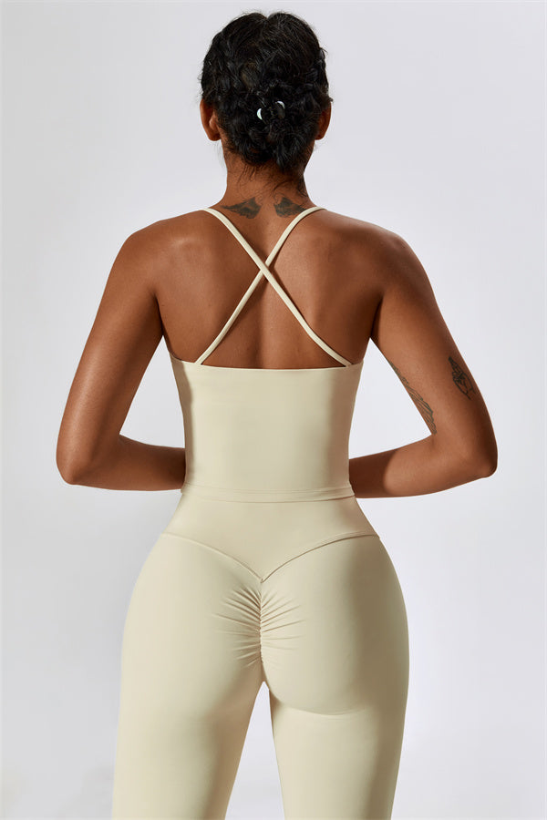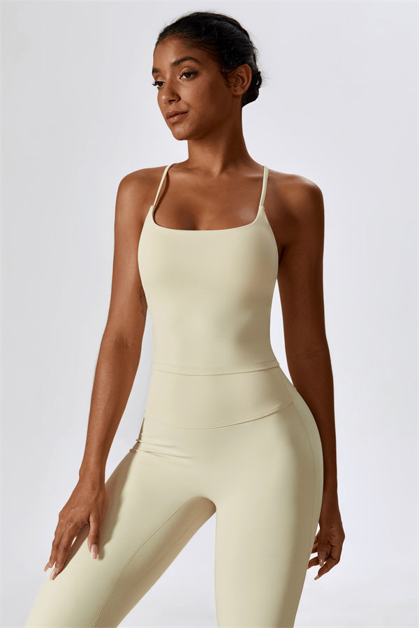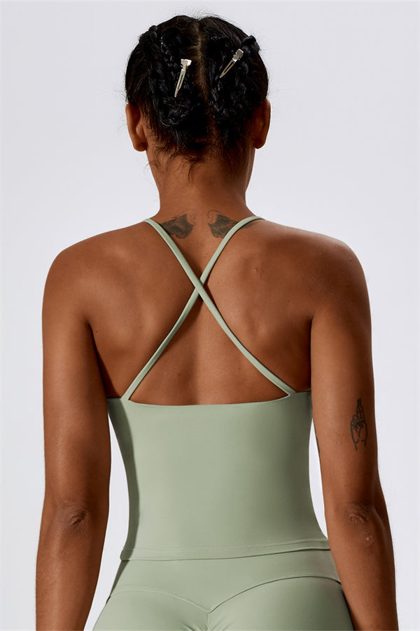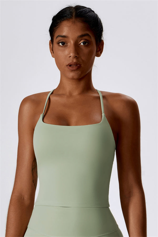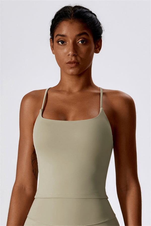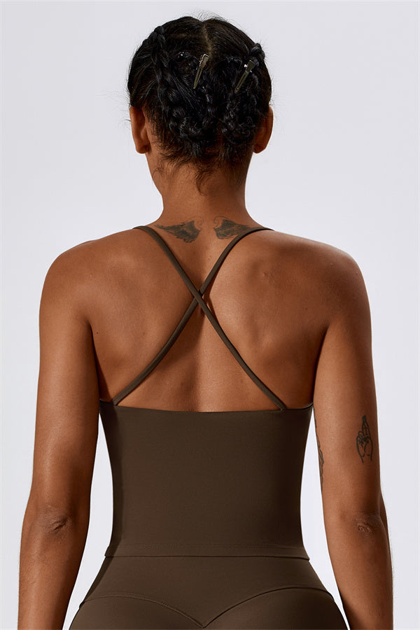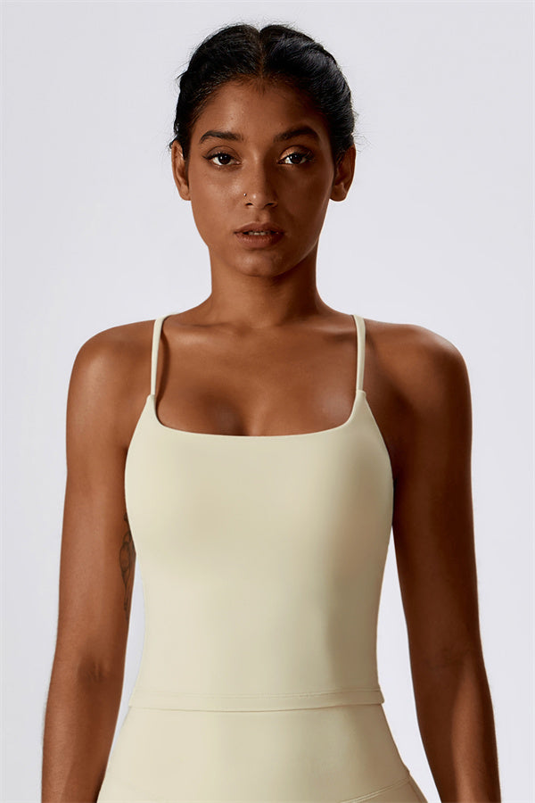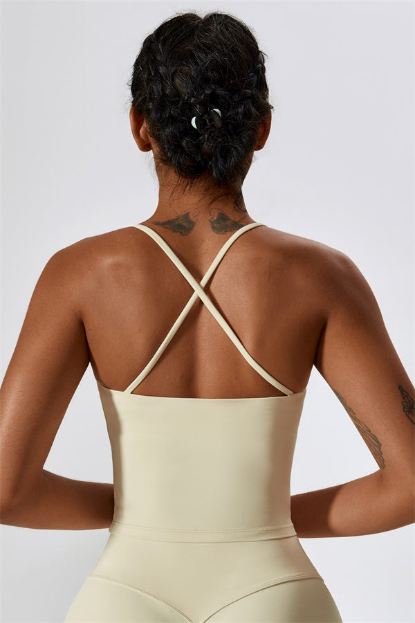 Introducing our extended-length sports bra, designed for a comfortable fit that provides gentle compression to enhance your waistline. The stylish cross-back straps beautifully showcase your back's graceful curves, adding a touch of elegance to your activewear collection.