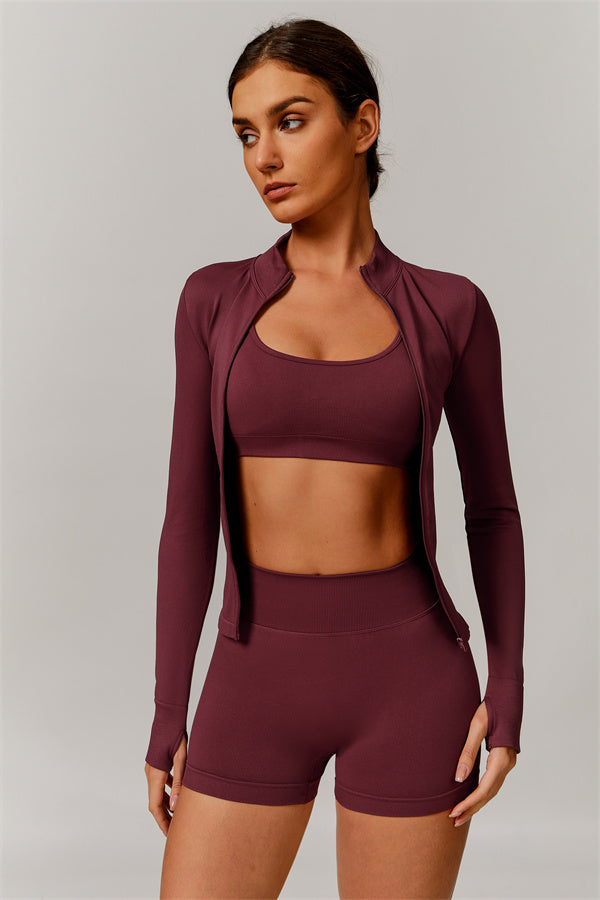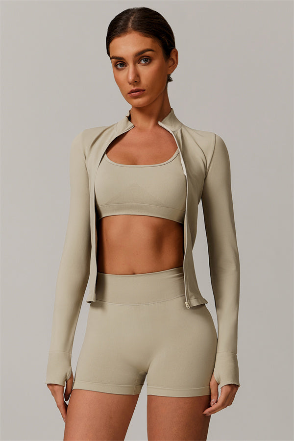 The Nova Luxe Jacket & Shorts 2-Piece Set is your go-to for both high-intensity workouts and effortless everyday wear. The ultra-soft, seamless fabric moves with you, offering a sculpted fit that enhances your natural shape. Wear them together for a polished, athleisure look, or mix and match with your other Sfigure favorites for endless styling possibilities.