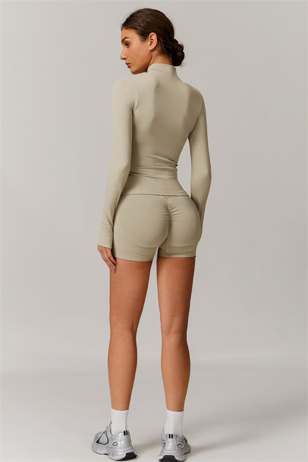 Power meets elegance in The Nova Luxe 2-Piece Set, featuring a sleek, structured zip-up jacket and contour-enhancing shorts. Designed for movement, performance, and all-day versatility, this set is made from a high-stretch, seamless fabric blend (90% recycled nylon + 10% spandex) that sculpts your body with a second-skin feel. Whether you're training hard or styling it for a casual athleisure look, this set offers the perfect combination of function and fashion.