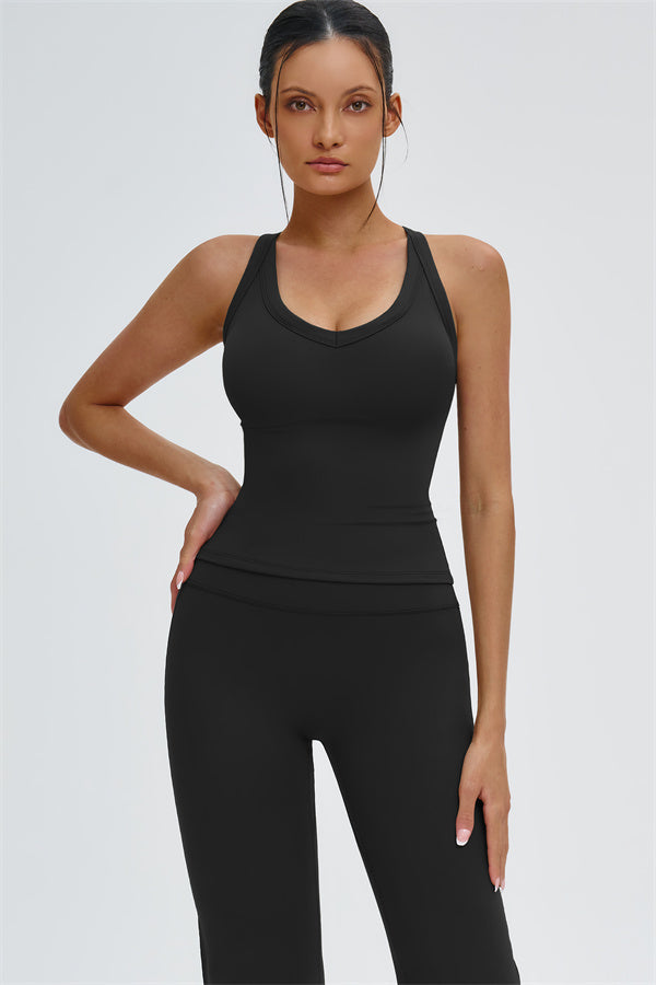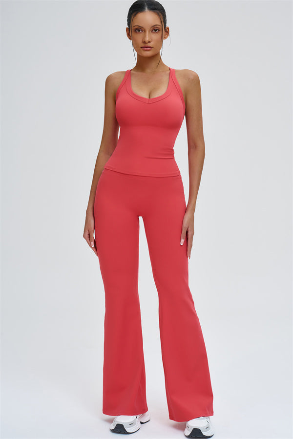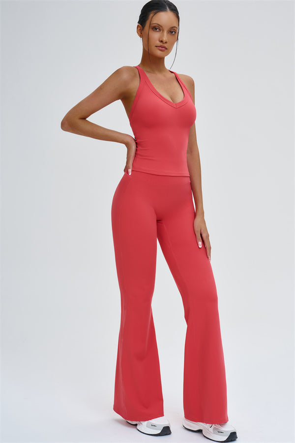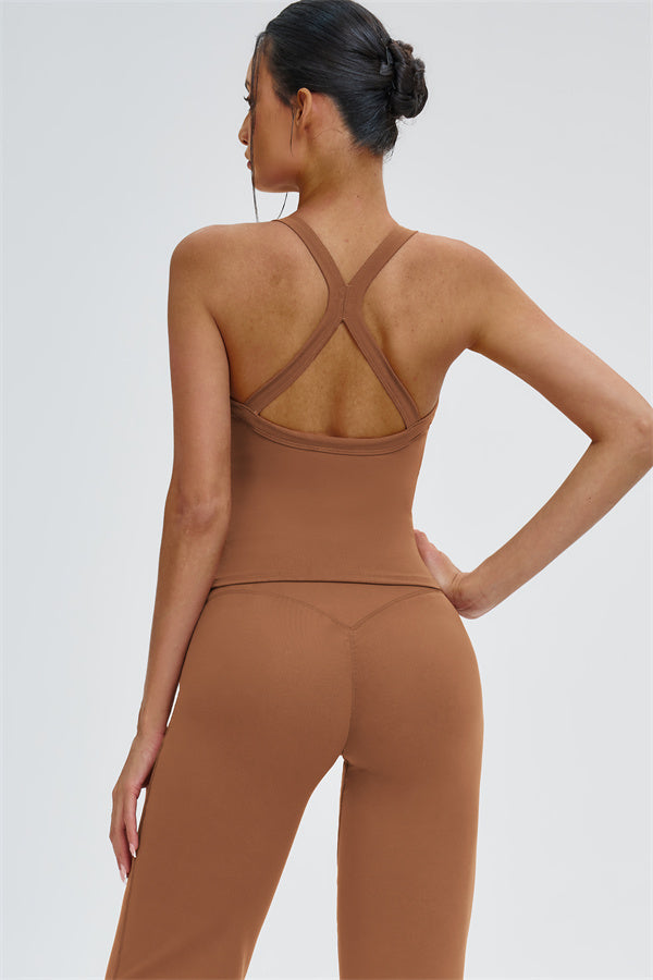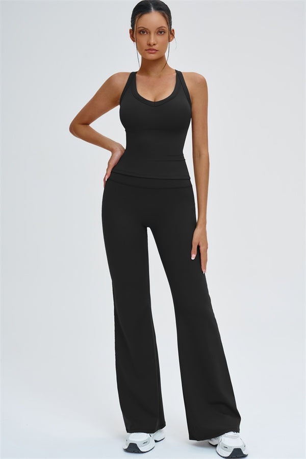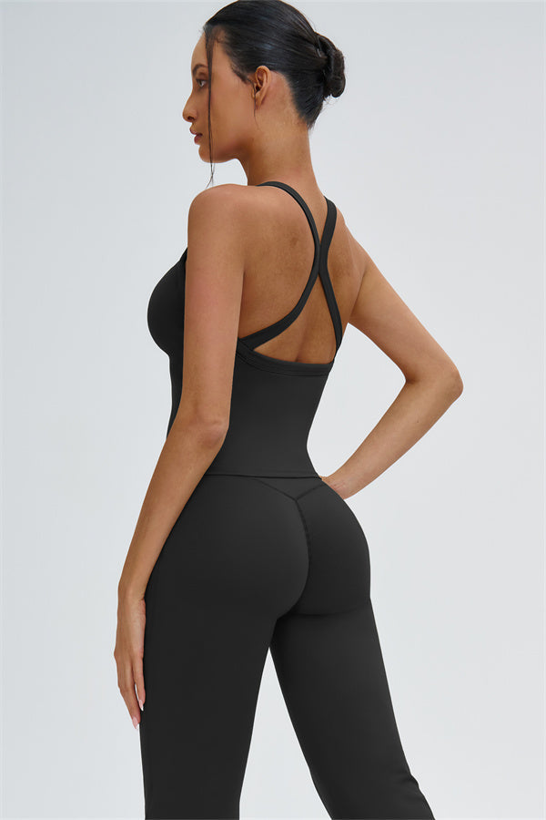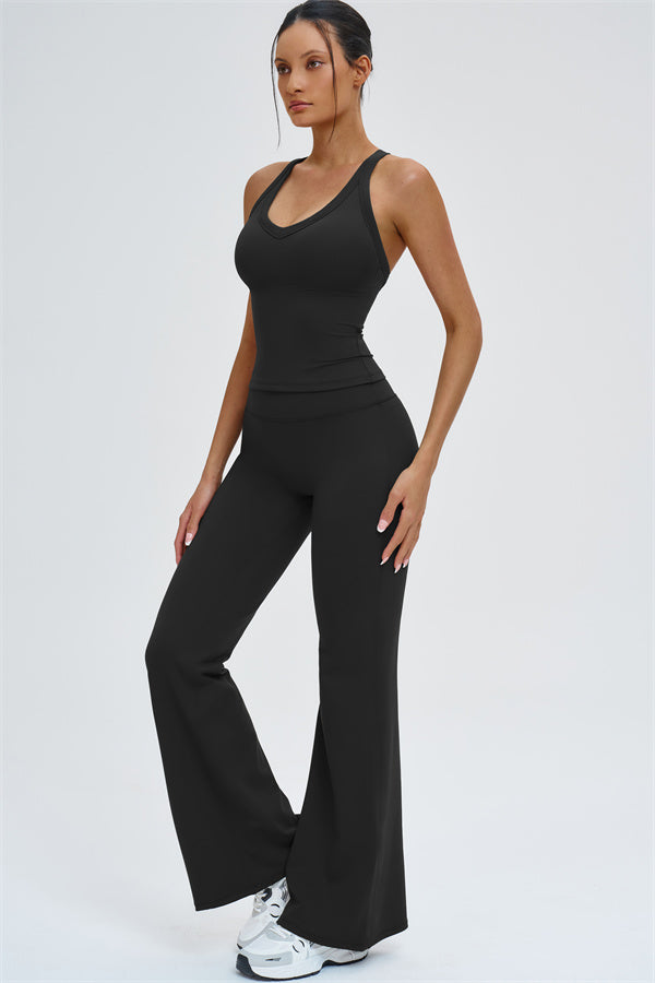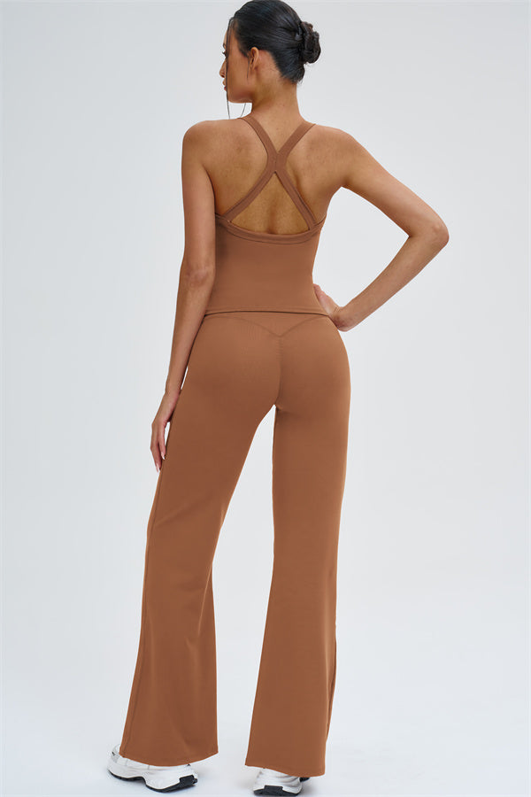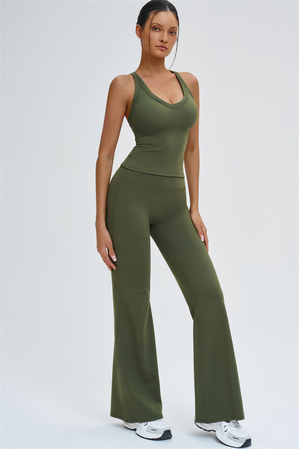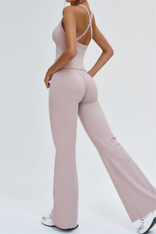 The Slate Cross Back Top & Flared Leggings 2-Piece Set – stylish, comfortable, and designed to move with you.
